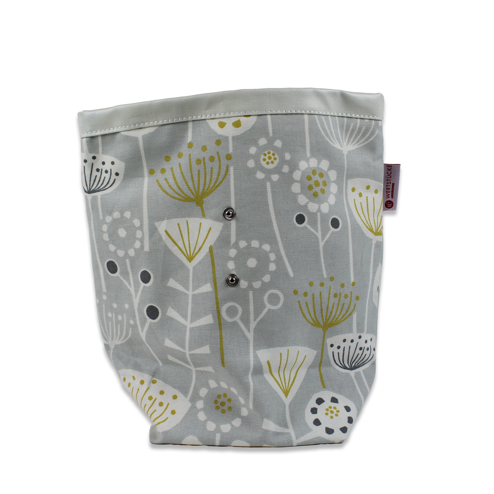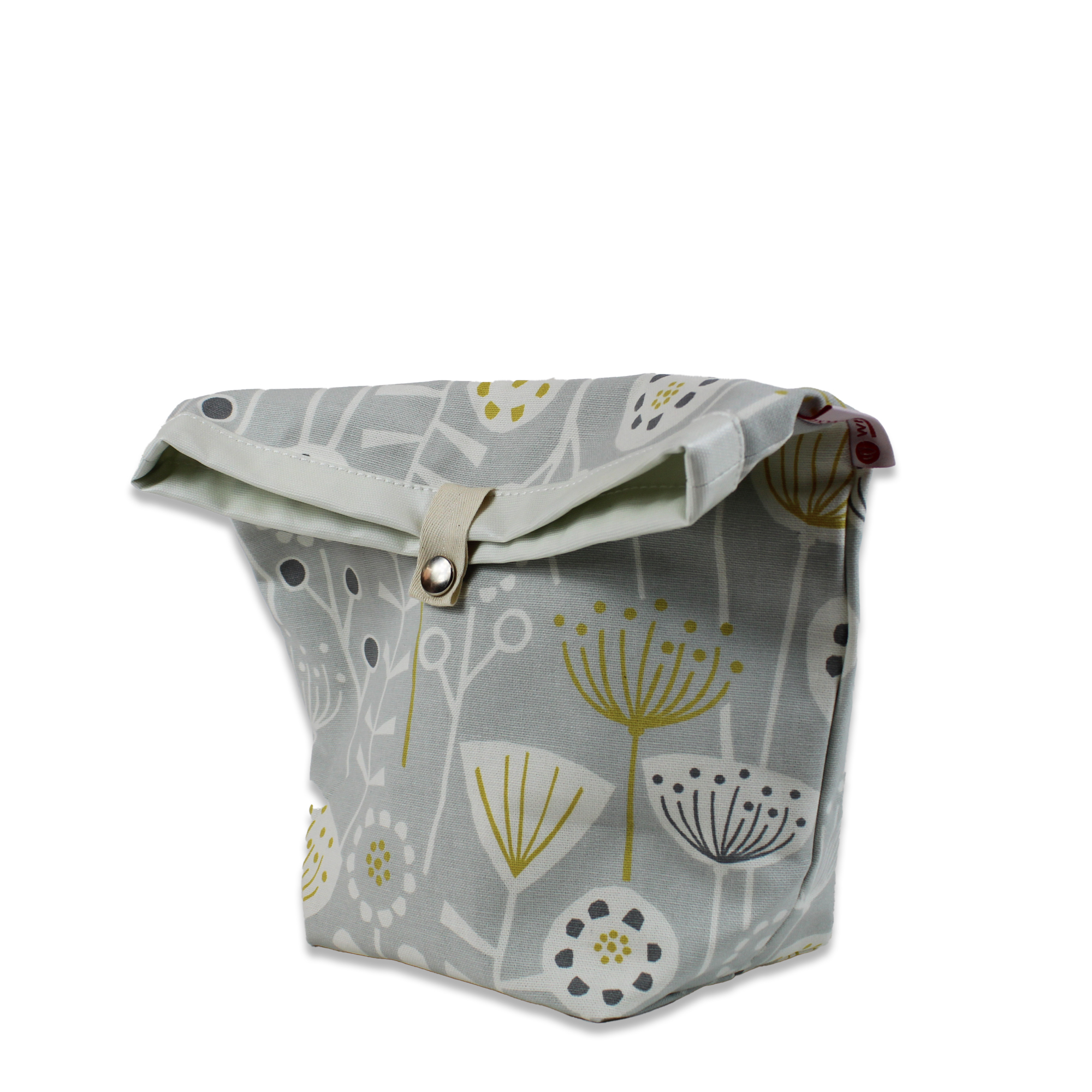 So praktisch! Unsere Lunch-Box BERGO besteht aus robusten, hochwertigen englischen Stoffen. Das Material hat eine besondere Haptik und ist in dieser Form sicher nicht überall erhältlich. Das minimalistische Design mit Dolden und Rispen wird durch gelbe und graue Akzente dezent betont. Hier passt neben die Stulle auch noch ein Apfel oder Joghurt hinein. Kleckert doch einmal etwas, ist es schnell weggewischt. Zwei Druckknöpfe dienen als Verschluss, so lässt sich die Höhe je nach Inhalt variabel anpassen.